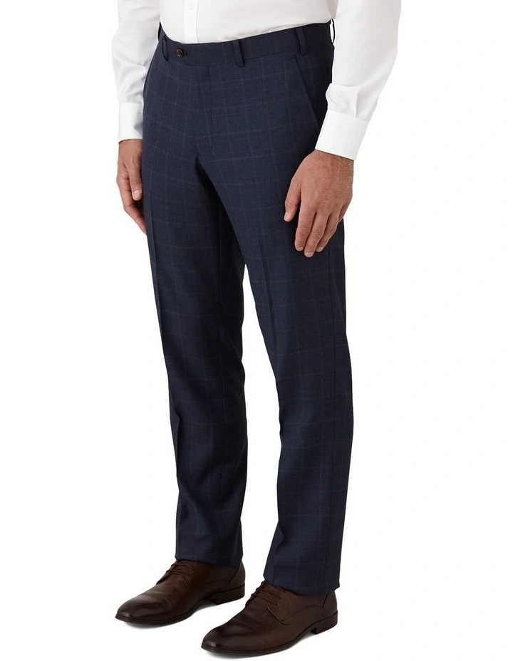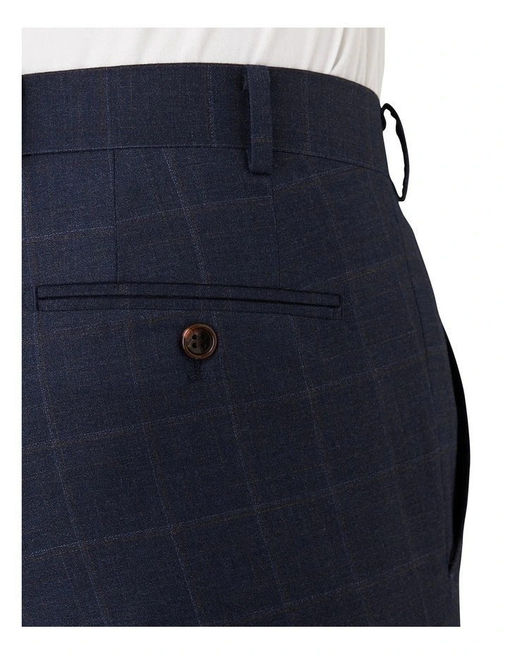 Designed in Australia and crafted from 100% super 100’s Australian merino wool. This modern fit Interceptor trouser brings timeless style to any occasion. In a deep mid-blue mlange base fabric with a brown and light blue windowpane overcheck, it’s a versatile suit for both business and formal events.