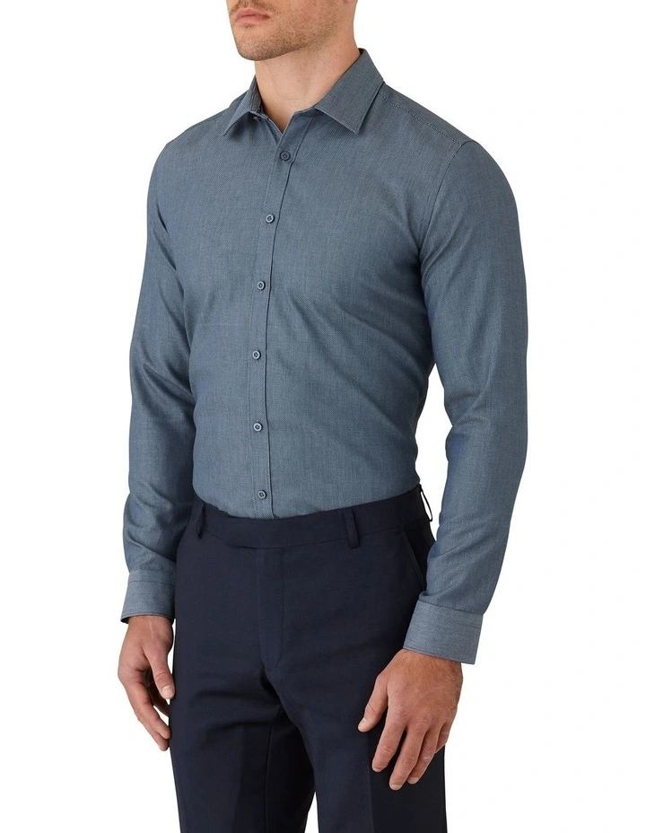 A honeycomb textured shirt in 100% cotton. A great addition to your winter tailoring wardrobe, perfect for office wear or your next smart casual event.