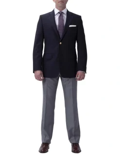 The Henry Sartorial plain twill Navy Blazer features gold button detailing with chest and two flap pockets, three internal pockets, soft shoulder in pure wool.