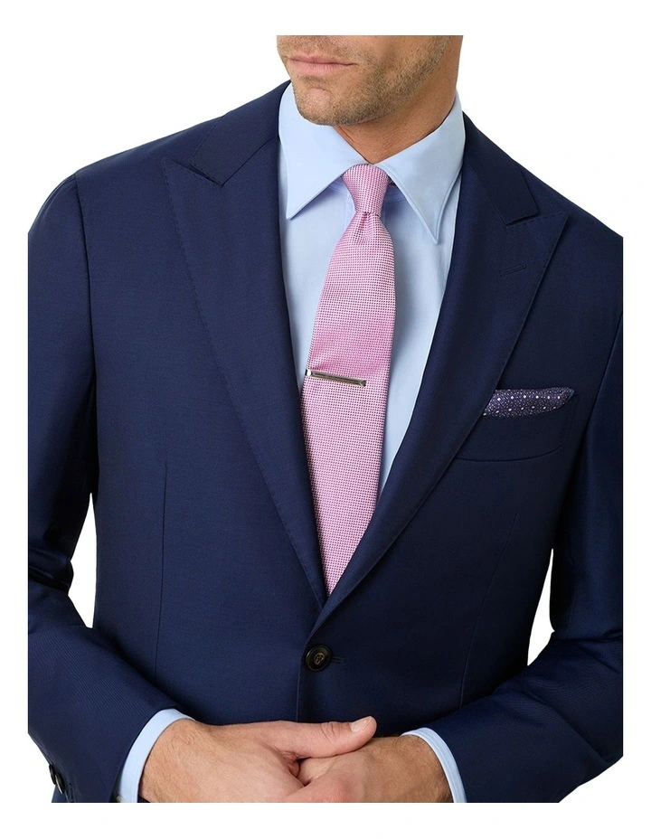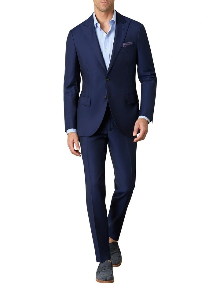 Introducing our new deep-navy business suit, the Maggiore; a slim-fitting number that is crafted from breathable wool and designed with a peak lapel, semi-structured shoulder and fully lined. Pair it with your favourite work shirt and a sleek pair of Derbys.