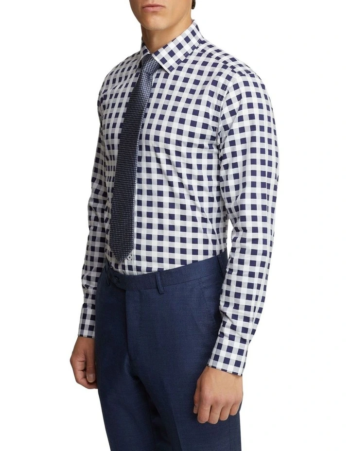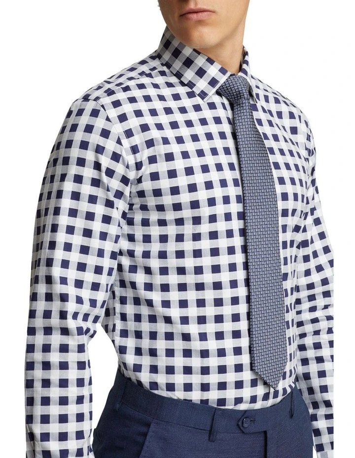 Make an impression in the Beckton Checked Luxury Shirt, a premium addition to your work collection. This crisp cotton shirt is part of our Luxury collection and is cut in a slim fit with a navy and white checked pattern. For a smart and powerful look in the boardroom, style this work shirt back with a navy suit and brown leather accessories.