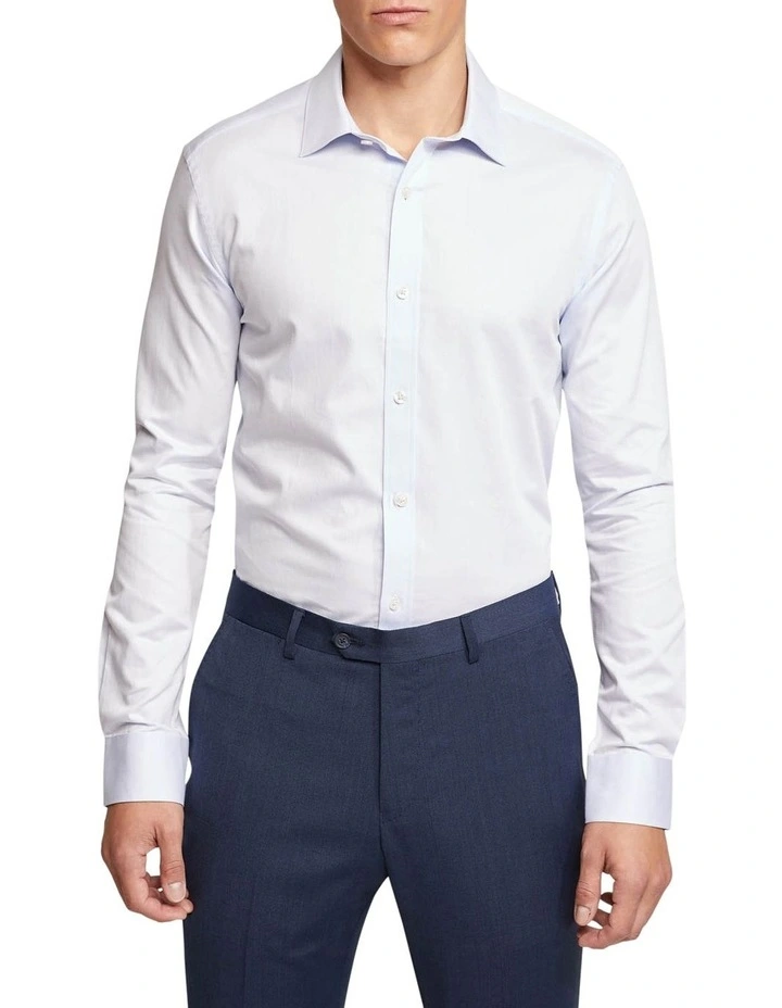 The Beckton Dobby Shirt is a timeless style for mens business wear. This shirt is cut in a modern slim profile and crafted from 100% organic cotton. It features a dobby weave with a small collar and single button cuffs. Team it with navy suiting and brown leather accessories for a sharp boardroom look.