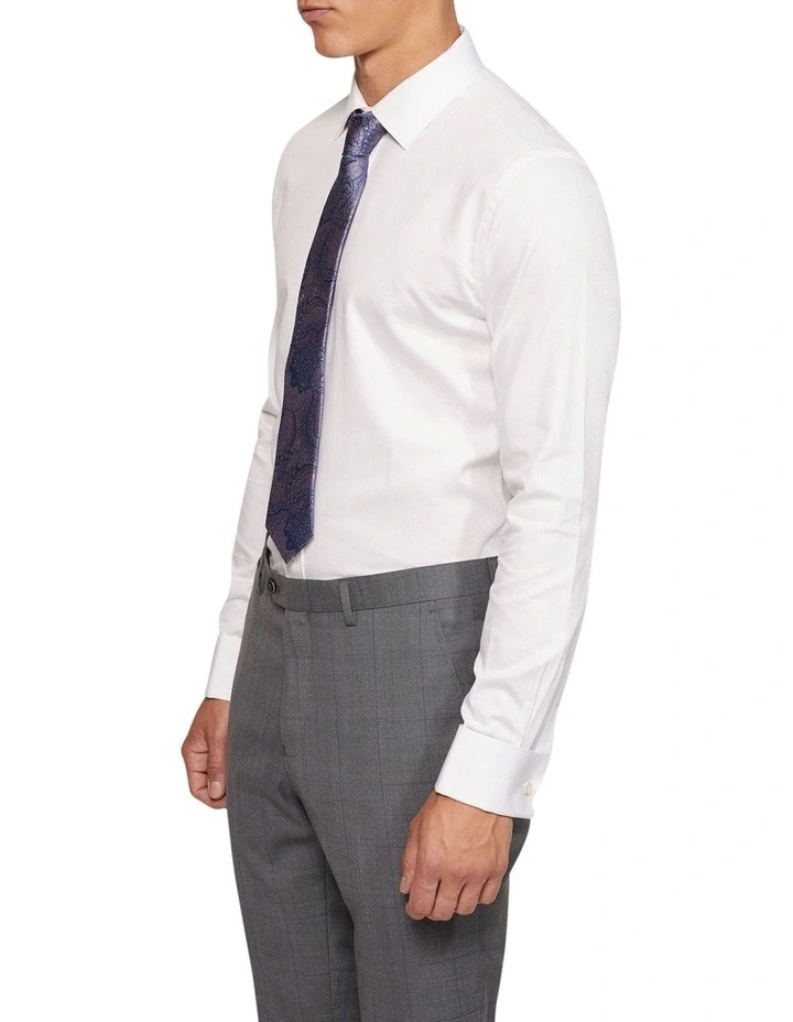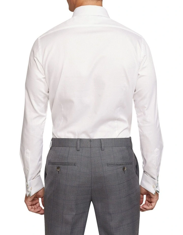 Add a touch of flair to your office style with the Beckton French Cuff Dobby Shirt. This crisp white shirt is crafted from 100% organic cotton and is cut in a slim fit. It features a dobby weave and stylish French cuffs and a regular collar. Wear it with a grey suit and brown leather shoes for a flawless office look.