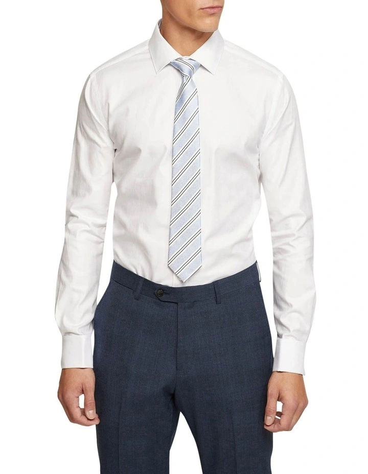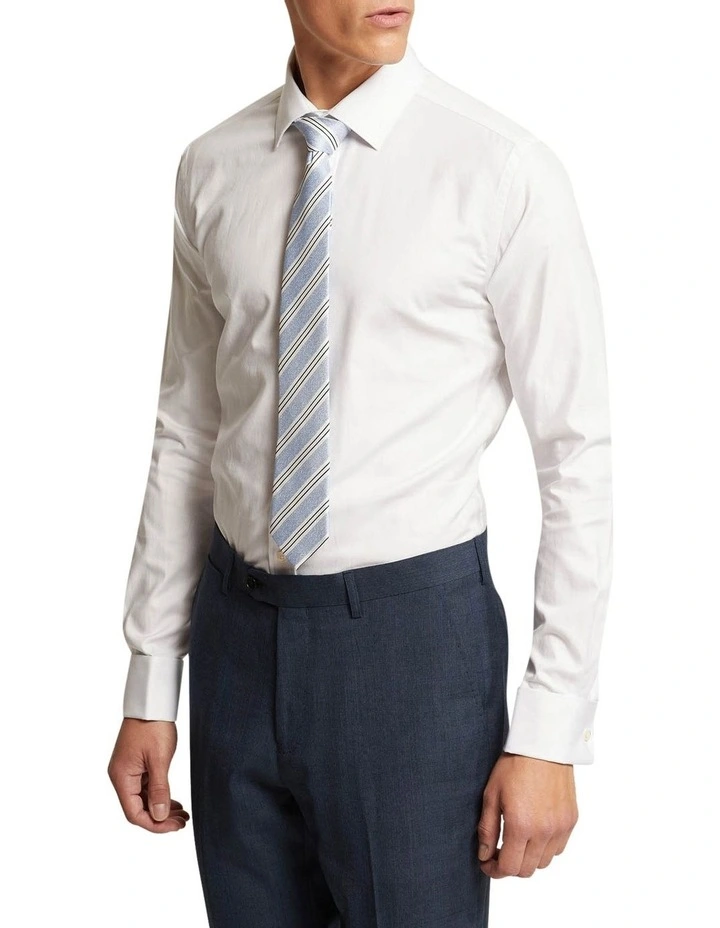 Add a touch of flair to your style with the Beckton French Cuff Shirt. This crisp white shirt is crafted from 100% cotton and is cut in a slim fit. It features stylish French cuffs and a regular collar. Wear it with a navy suit and brown leather shoes for a flawless look.