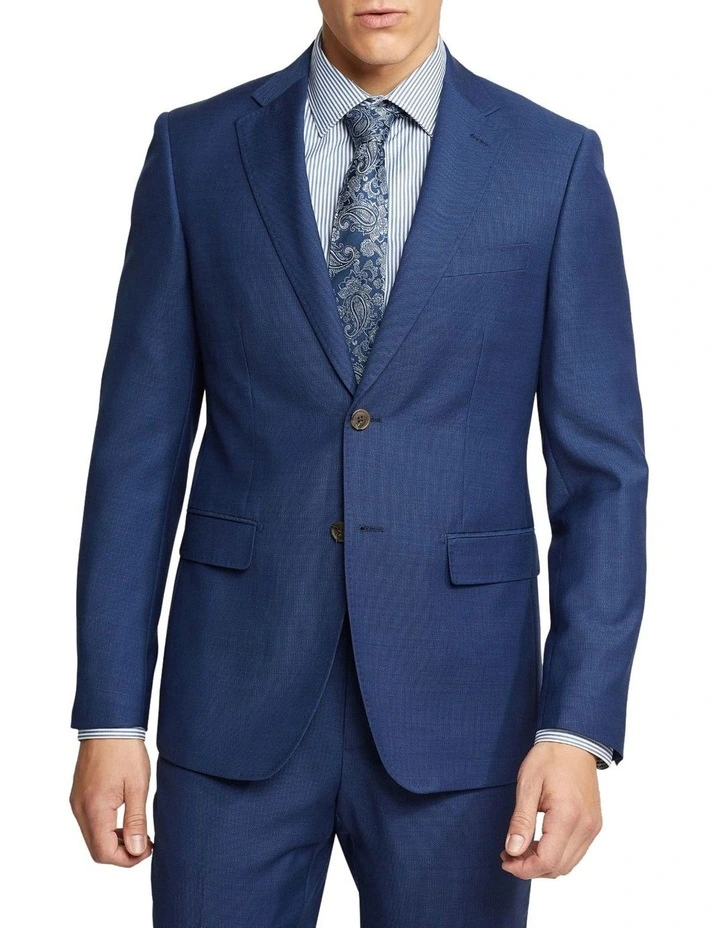 When you need to look your best, the Byron Wool Suit Jacket has you covered. This premium suit is crafted from Verified Australian Merino Wool that has been sourced from farms in New South Wales. It is cut in a slim fit and features side and chest pockets, a double-button front and notch lapels. Internally the jacket has a unique signature Oxford lining and three pockets. Wear yours with the coordinating Folded Cuff Wool Suit Trousers with a striped shirt and brown leather shoes.