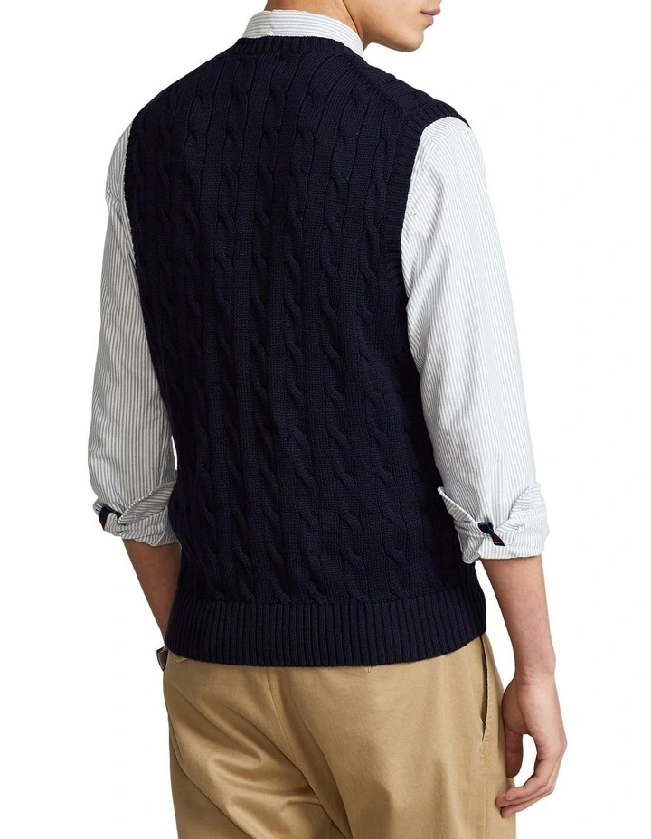 This sweater vest combines two of Polo’s most iconic design details: a textural cable-knit motif and our signature Pony.