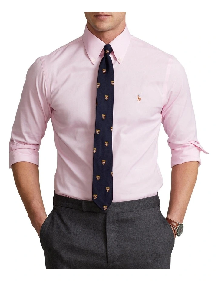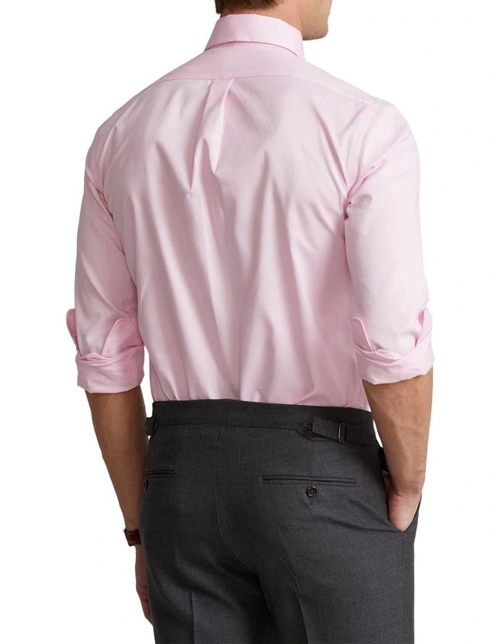 - Split pleated back yoke ensures smooth, contoured shoulders.
