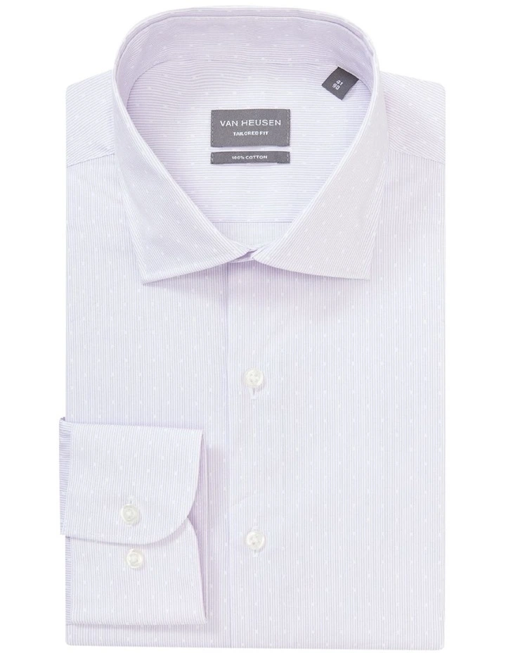 The world leader of men’s shirting, Van Heusen’s high quality and stylish shirts are carefully selected to provide you with on trend seasonal patterns, colours and timeless basics in a variety of fits to best suit your shape. Crafted with 100% soft breathable cotton, cut in the tailored fit, a flattering sleek silhouette that slightly tapers down through the waist and emphasises the chest. The Cotton Dot Pinstripe Shirt is perfect for those who like their shirts snug. The comfortable and flexible shirt features a deep spread collar with fixed collar stays, round button cuffs and french placket with an all over dot pinstripe pattern .