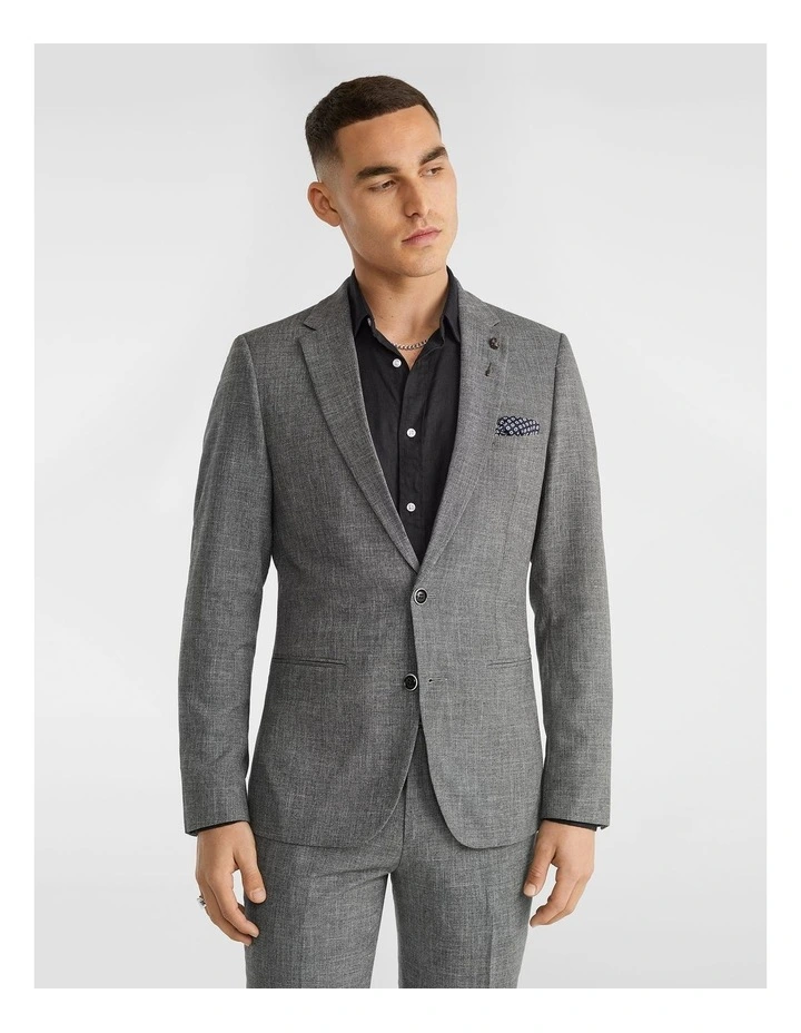 Yd. Charlie Textured Slim Suit Jacket In Charcoal